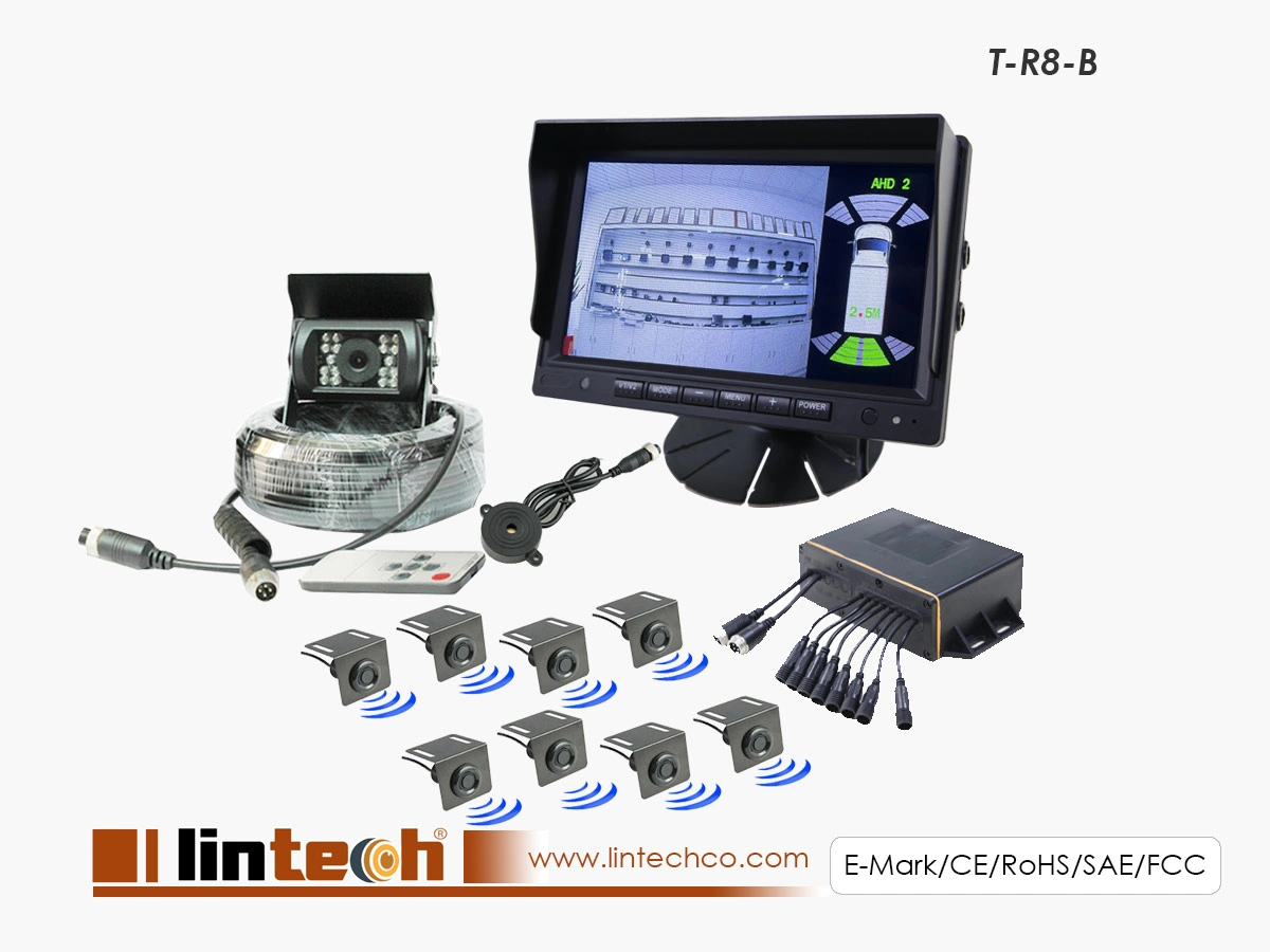 1) 8 probe reversing radar system, applicable to all the large vehicles;