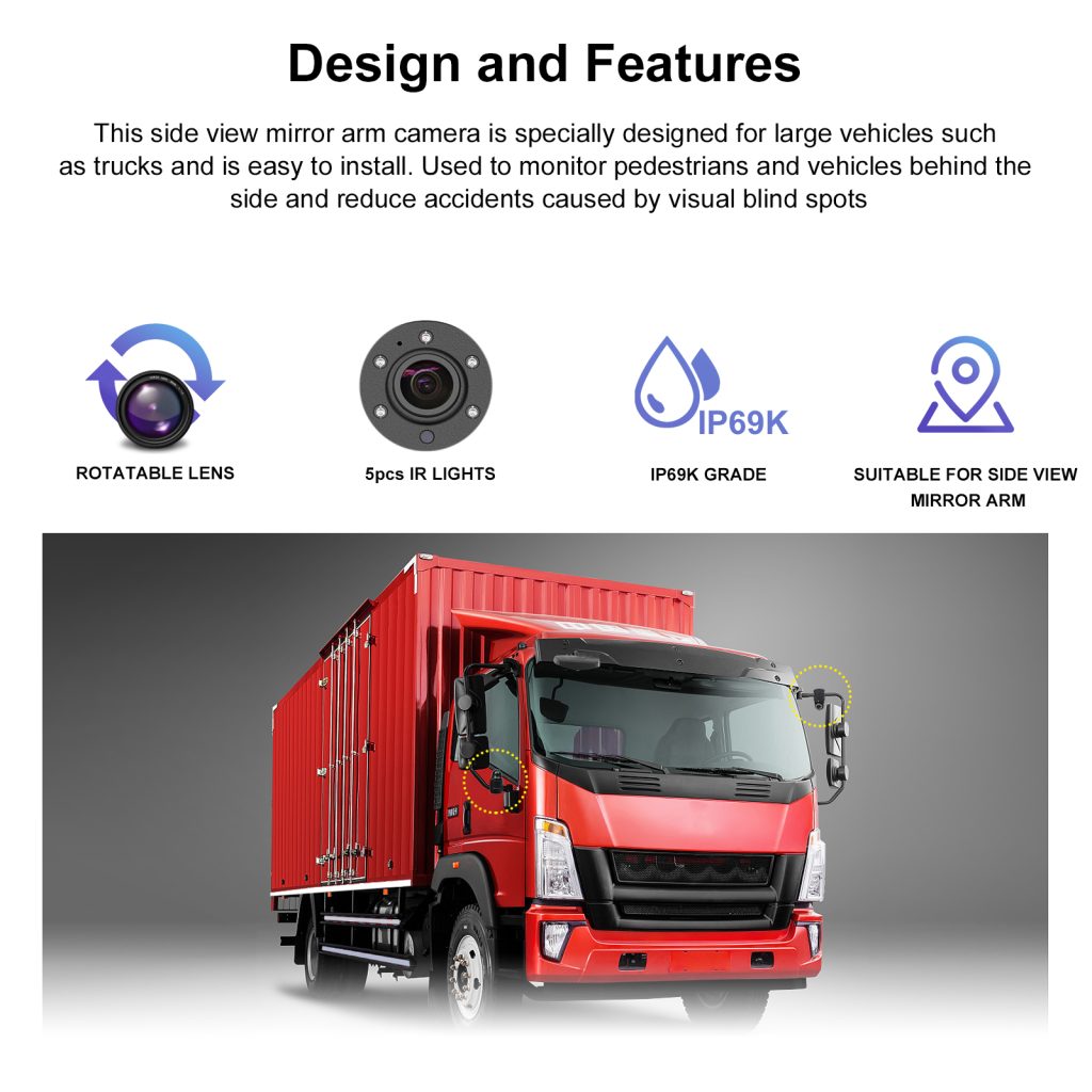 The Kysail AHD Side Mirror Arm Mount Camera is designed to improve side visibility and reduce blind spots for drivers using external camera systems. Mounted directly onto a mirror arm, it provides a stable and elevated viewing angle that is ideal for monitoring vehicle sides during driving, turning, lane changes, or tight manoeuvres.
